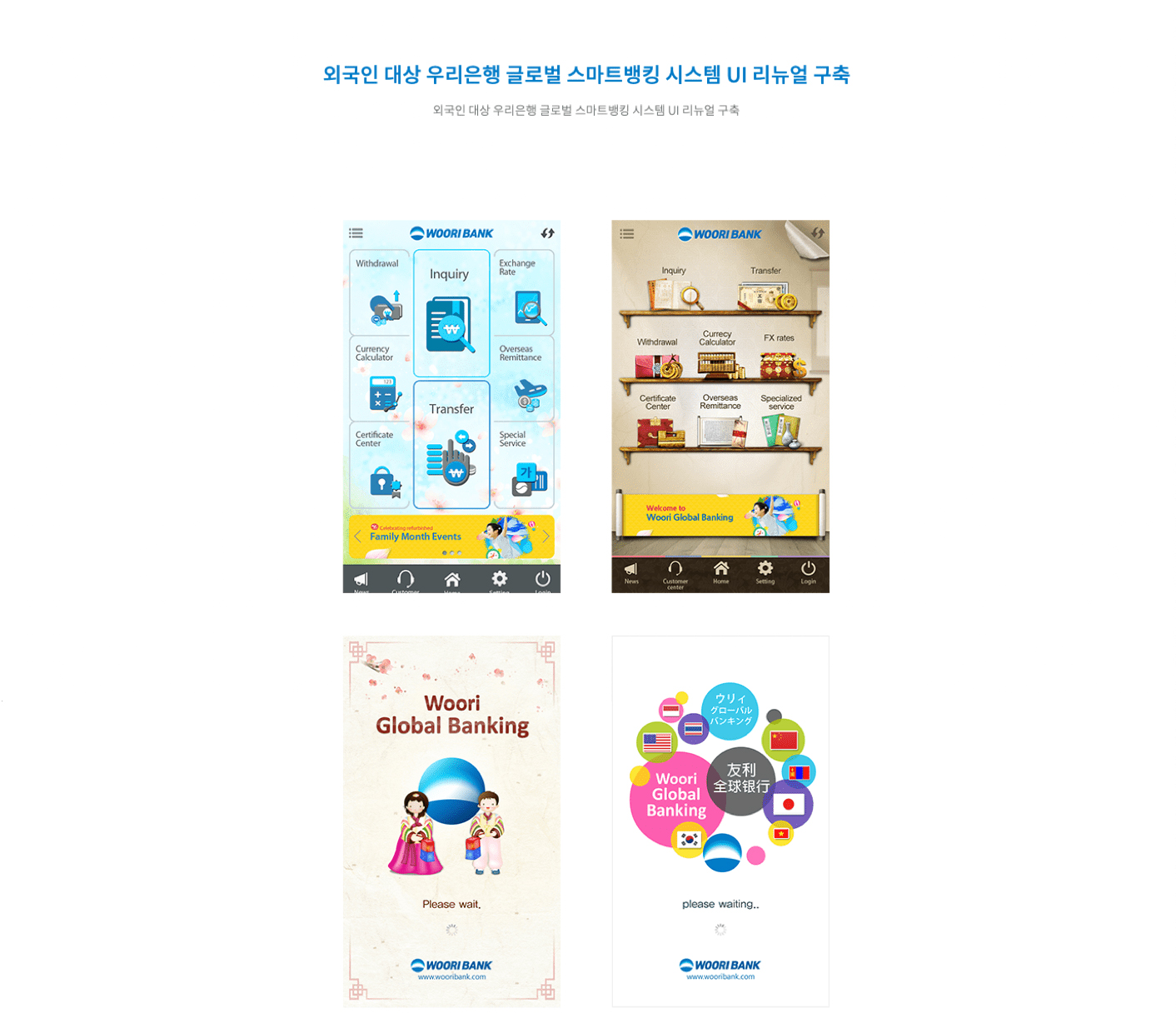 외국인 대상 우리은행 글로벌 스마트뱅킹 시스템 UI 리뉴얼 구축