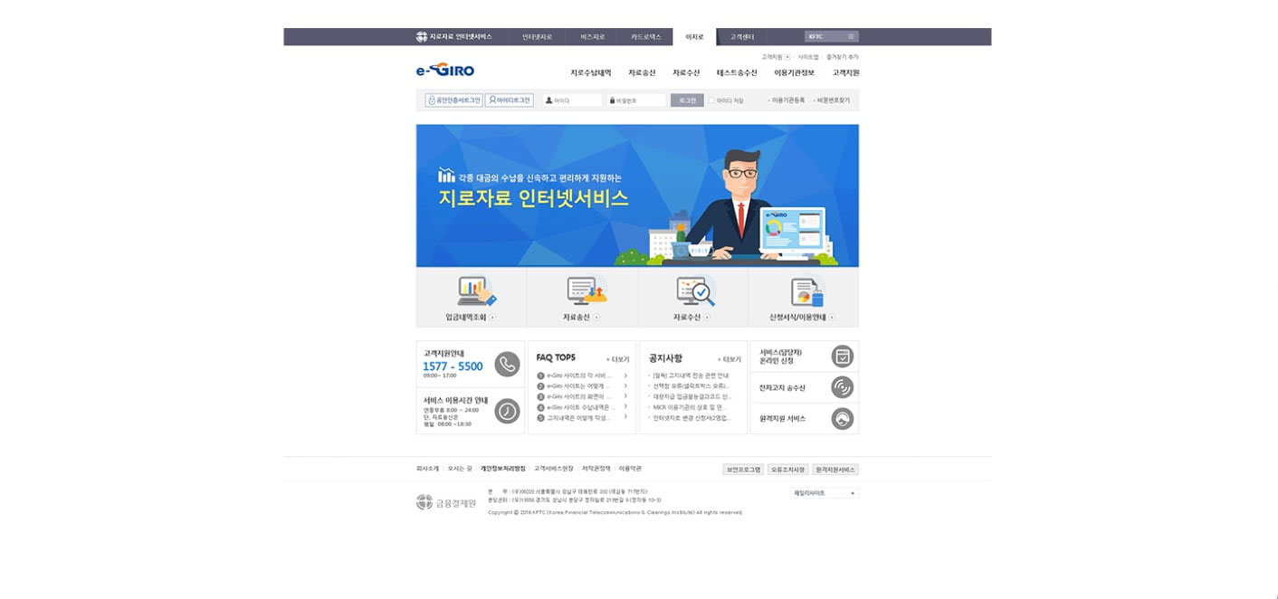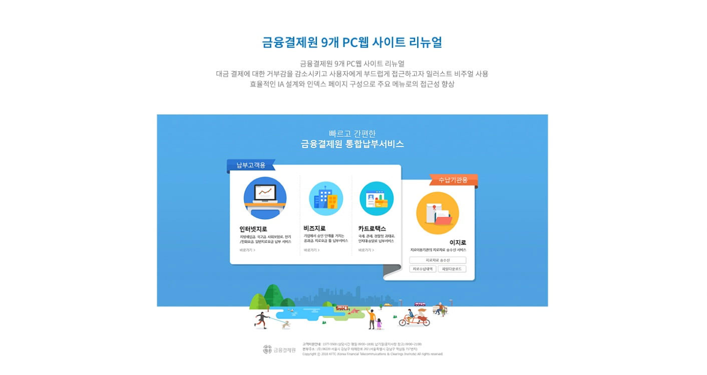 금융결제원 웹사이트 이용자를 위한 편의성 확대를 위해 리뉴얼을 진행 및 UI/UX를 통합개편