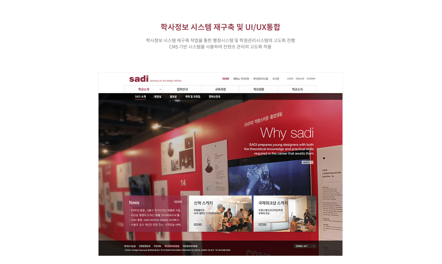 삼성전자 디자인대학 SADI 학사정보 시스템 재구축 및 UI/UX통합