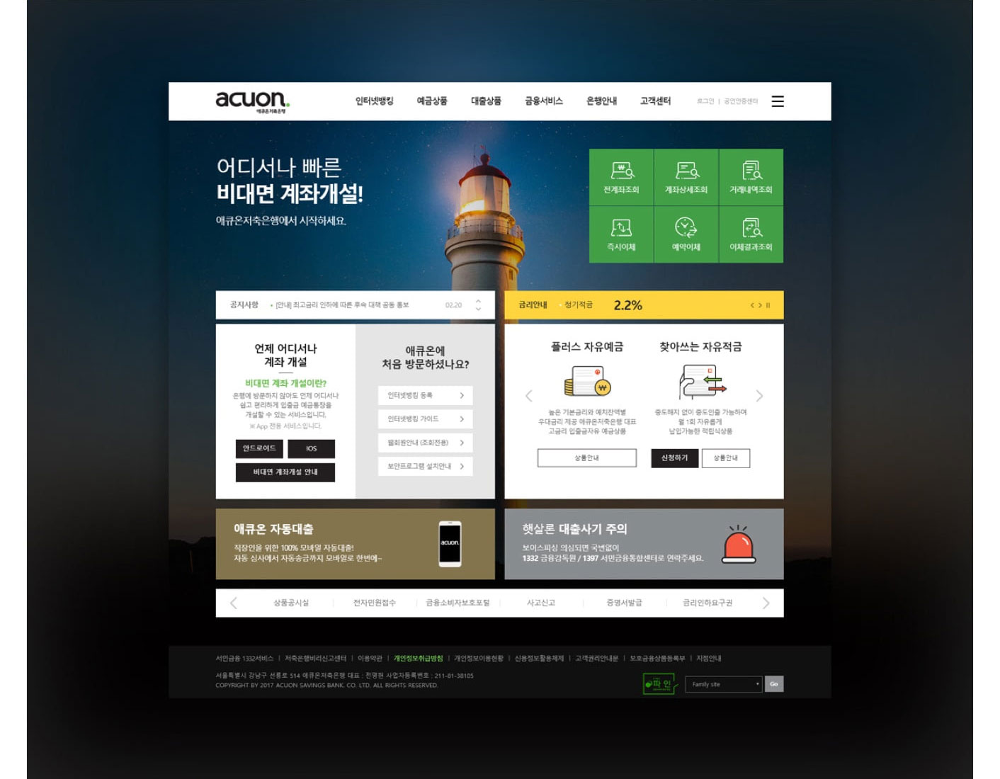 대한민국 대표 저축은행의 새로운 브랜드 경험 애큐온만의 새로운 비주얼 언어를 통해 매력적으로 소통하며, 채널간 역할 분배와 경험을 유도