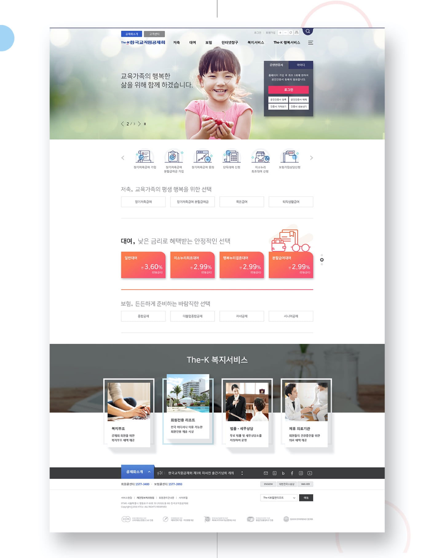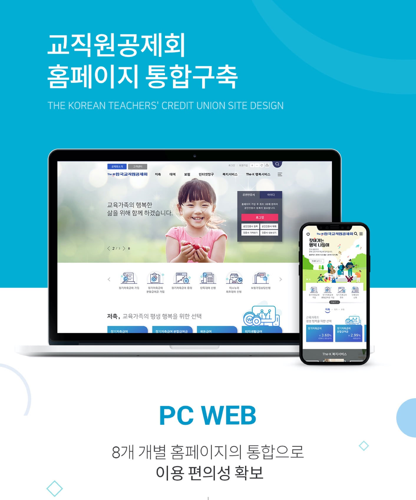 8개로 분산된 홈페이지 통합 구축 및 한국교직원공제회 Identity와 최신 IT트렌드를 반영한 콘텐츠 가독성 및 전달력 강화
