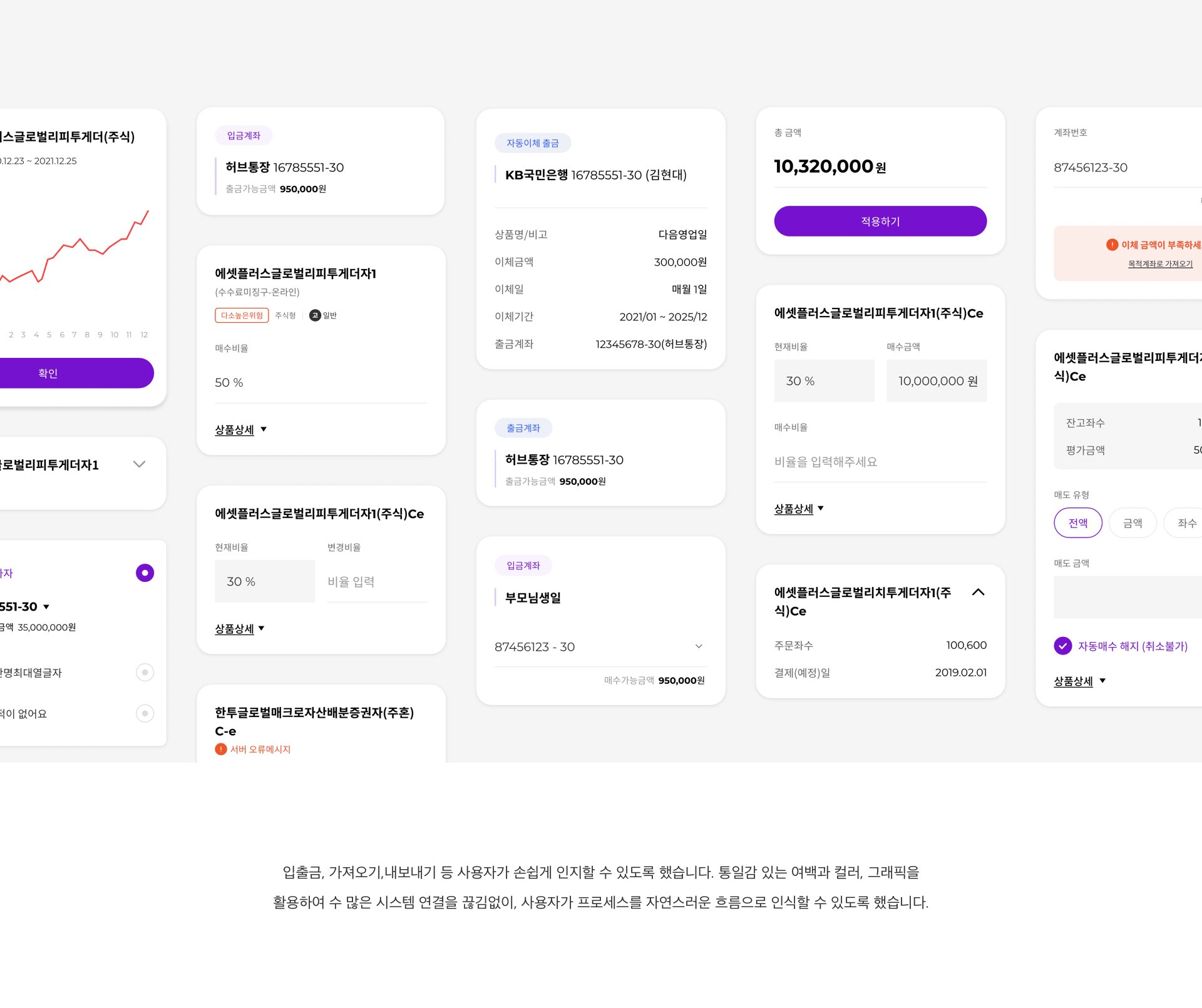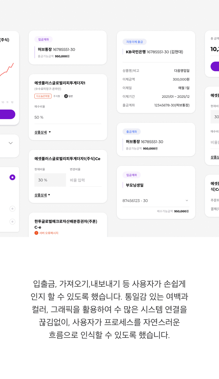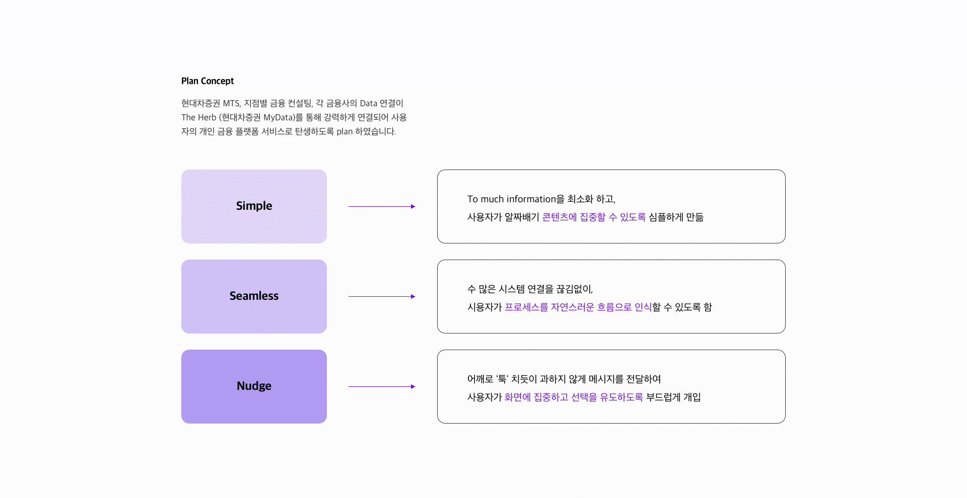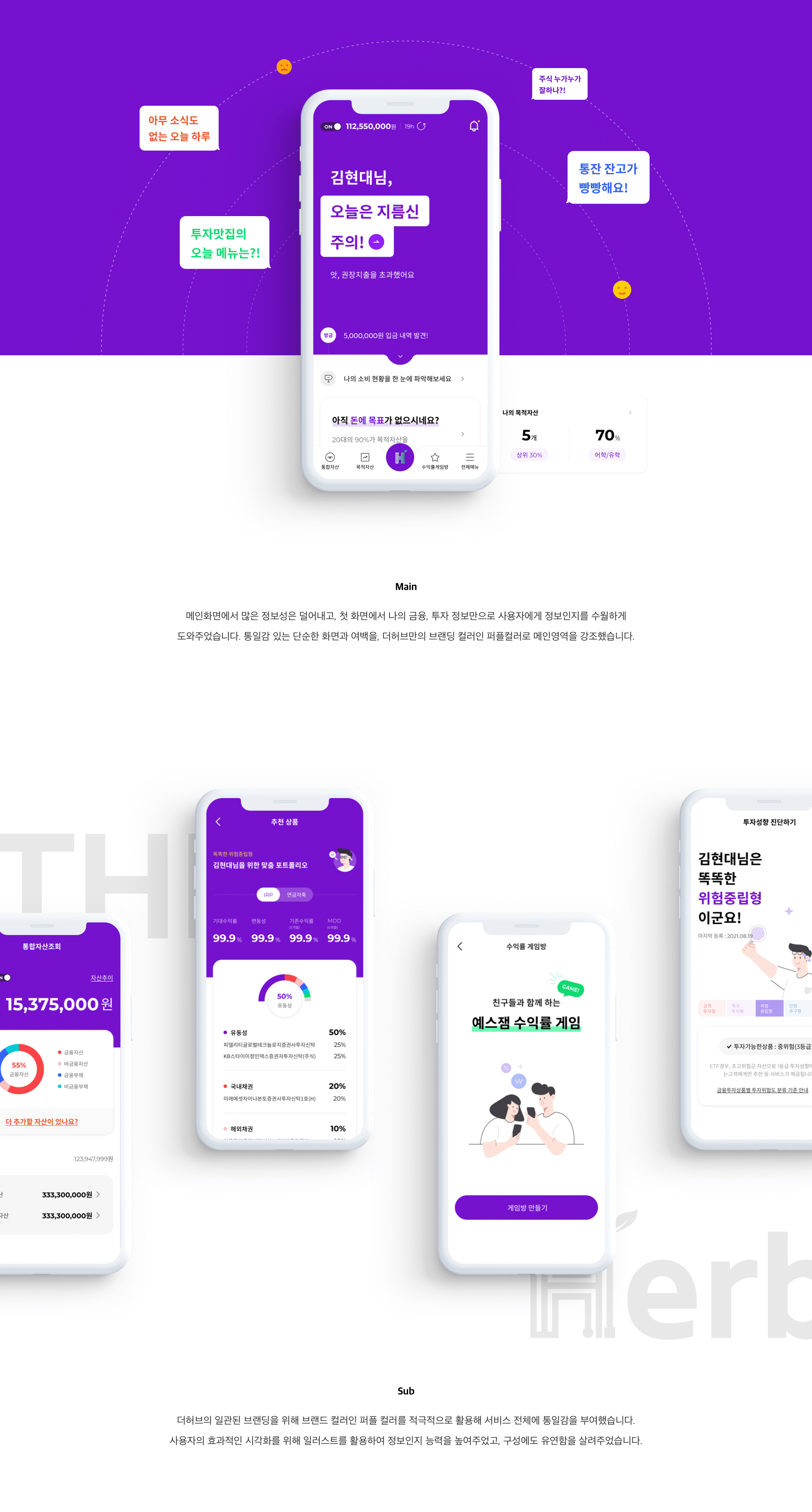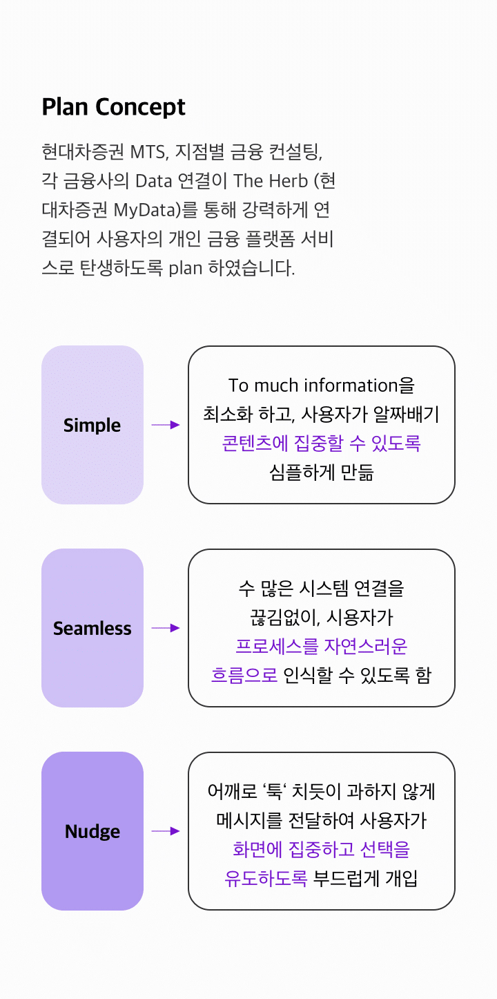 20만명 이상 사용하고 있는 현대차증권 MTS 확장 버전으로 현재 자산을 기준으로 하여 사용자의 목표자산(노후관리) 설정, 소비패턴 분석, 더 나아가 금융 컨설턴트 업무까지 가능한 초밀착 개인 금융화 서비스를 구축하는 프로젝트입니다.